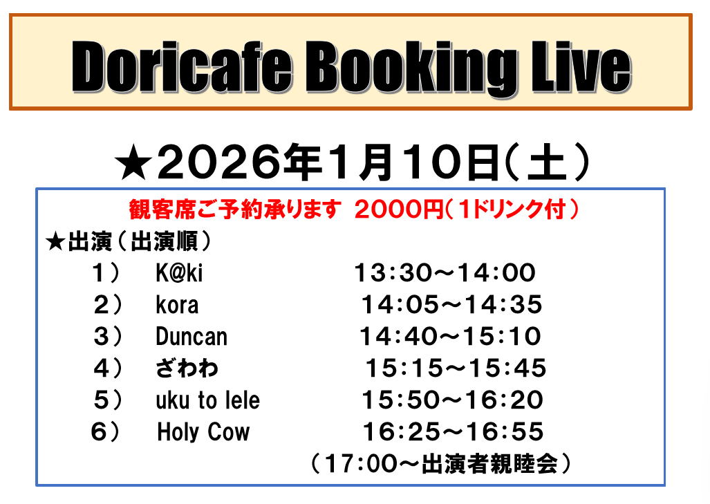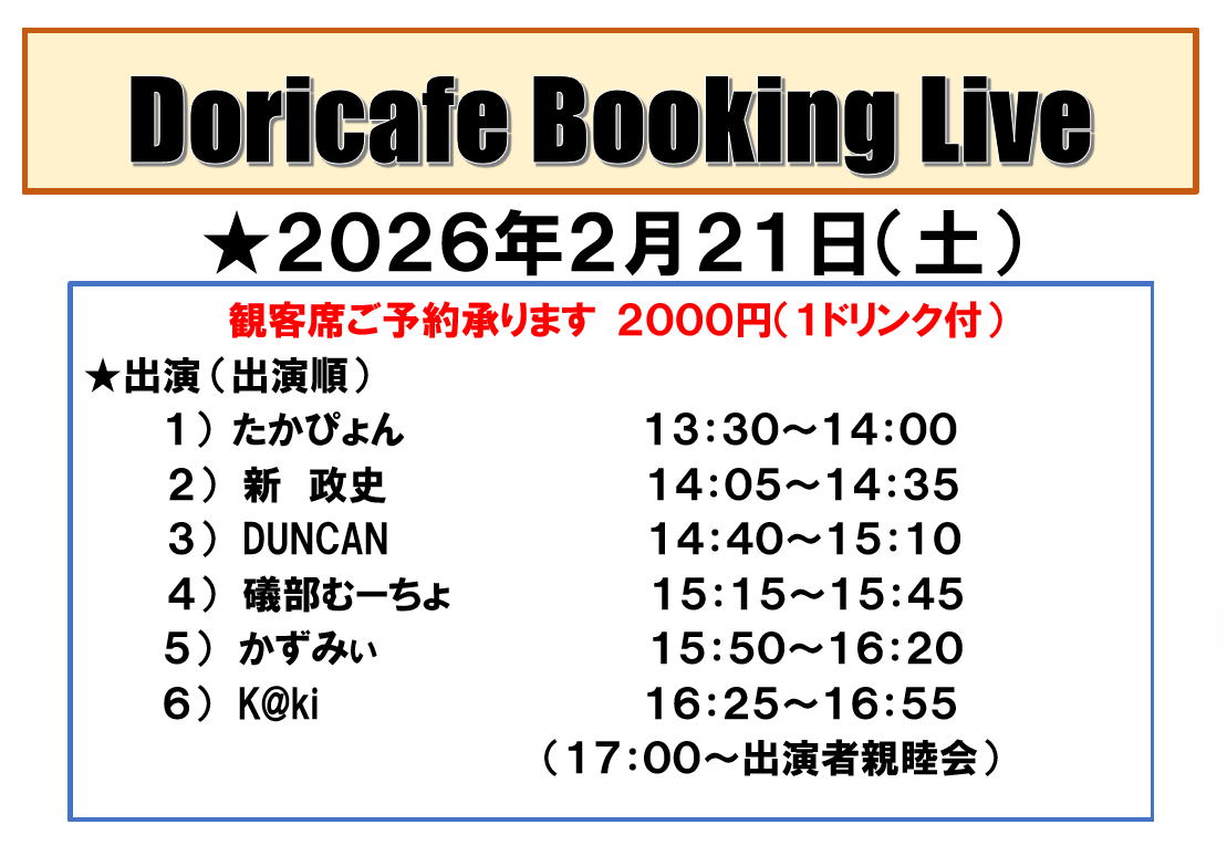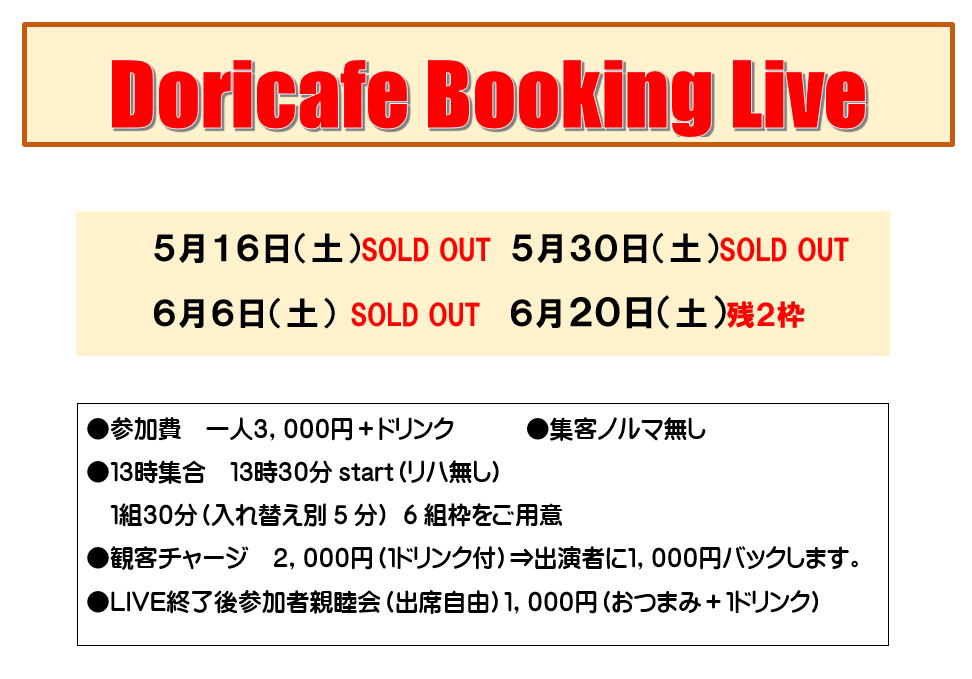 土曜・日曜・祝日はドリカフェのライブタイム。