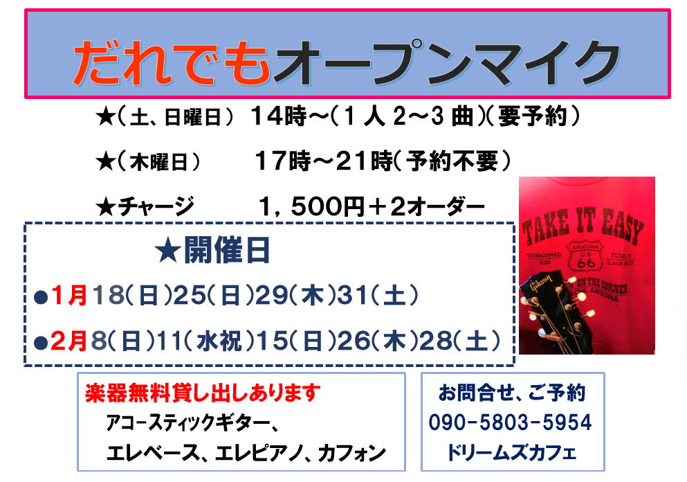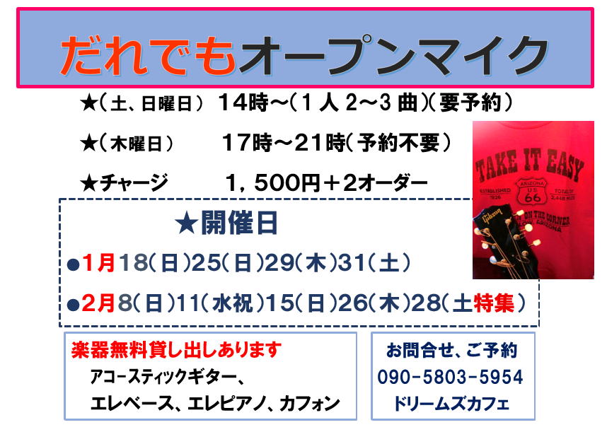 ★木曜日のオープンマイクは予約なしでもOKです。ふらっと立ち寄ってくださいね。