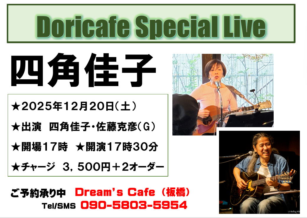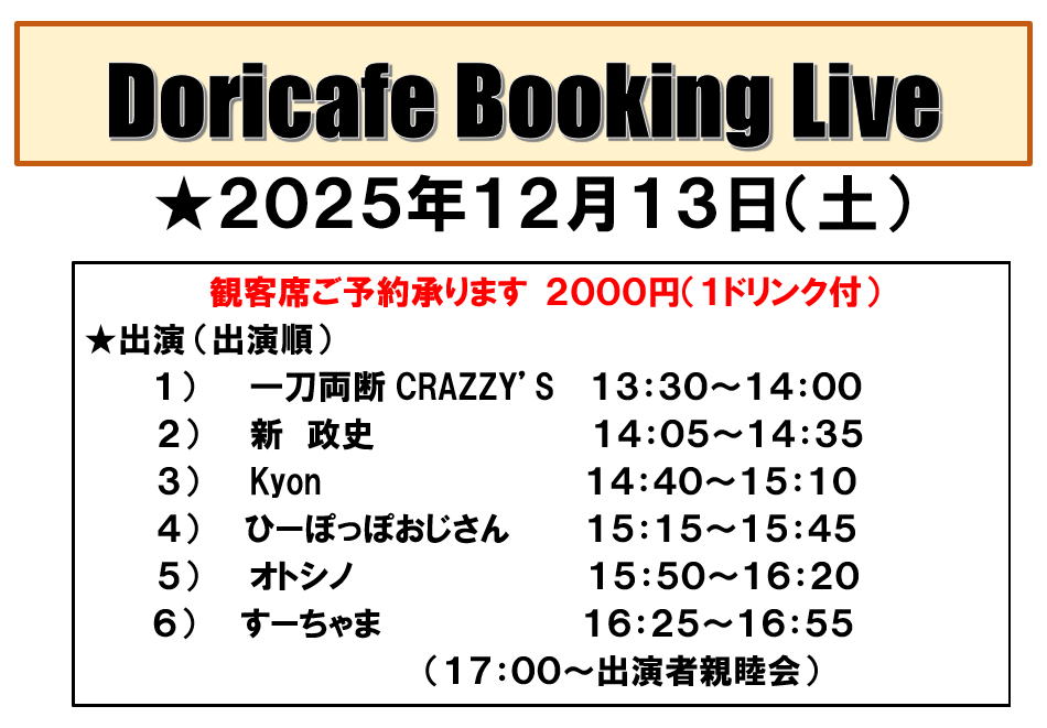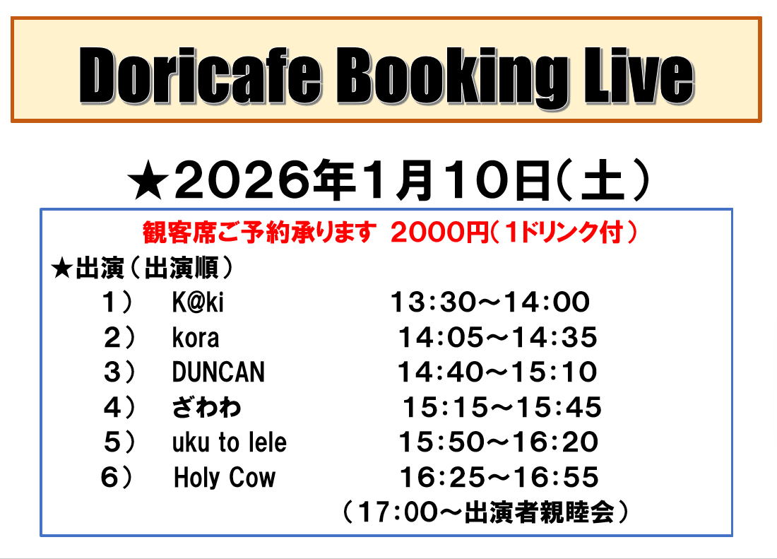 土曜・日曜・祝日はドリカフェのライブタイム。