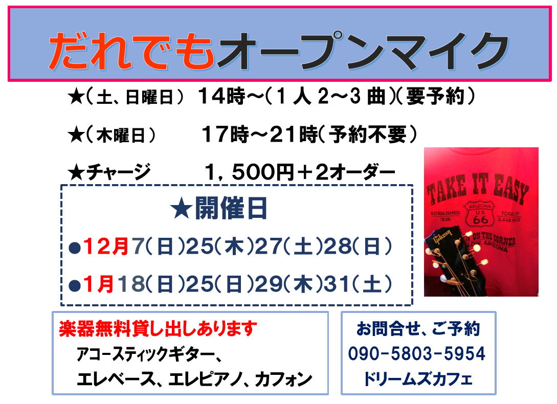 ★木曜日のオープンマイクは予約なしでもOKです。ふらっと立ち寄ってくださいね。