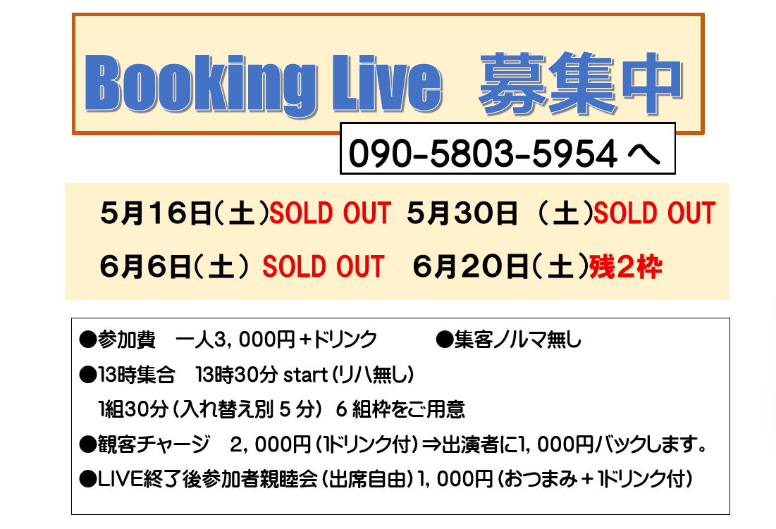 毎月土曜日1~2回開催(予定)するライブです。